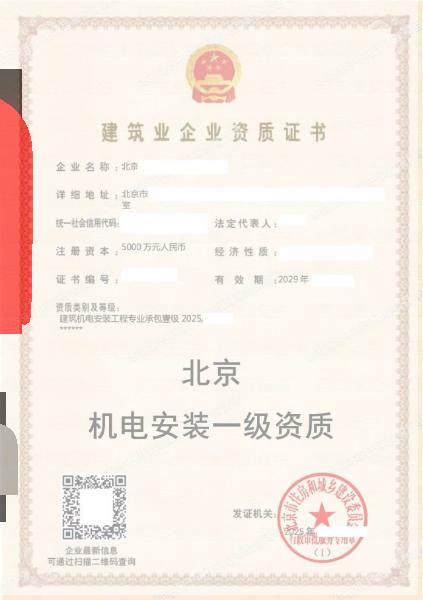北京機(jī)電安裝一級(jí)專業(yè)承包資質(zhì)低價(jià)轉(zhuǎn)讓
