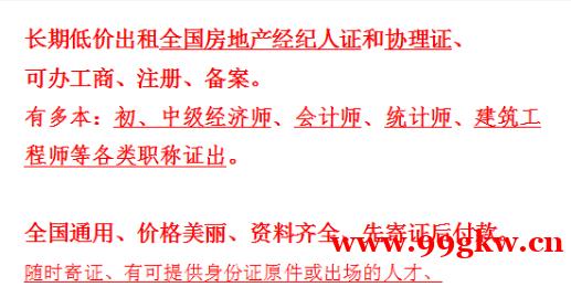 全國房地產(chǎn)經(jīng)紀(jì)人證,協(xié)理證,經(jīng)濟(jì)師,統(tǒng)計(jì)師,會(huì)計(jì)師等證出租 17336546703