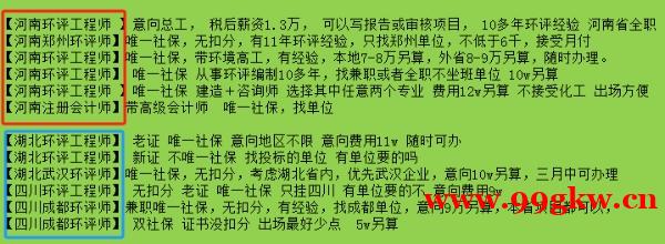 聯(lián)系我時,請說是在99掛靠網(wǎng)看到的,謝謝!【江蘇環(huán)評師】,兼職唯一或半全職(時間方便可寫報告),沒扣分,10萬(證書費)+簽字費(限表500)+出場費(1000元/次),以上證書費轉(zhuǎn)入單位后一次性付清,簽字費和出場費以工資形式按月結(jié)算,有合適單位,可以先預(yù)簽合同。主要想江蘇附近外省,浙江安徽上海山東都可以的